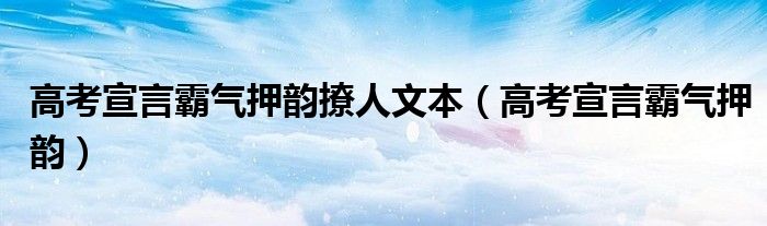 以上就是“高考宣言霸气押韵”全部内容,高三网小编编辑整理。高三网为您提供更多有关高考励志等文章,欢迎广大考生访问高三网,获取更多关于高考的最新资讯。