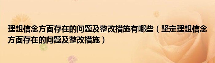 关于理想信念方面存在的问题及整改措施有哪些,坚定理想信念方面存在的问题及整改措施这个很多人还不知道,今天菲菲来为大家解答以上的问题,现在让我们一起来看看吧!